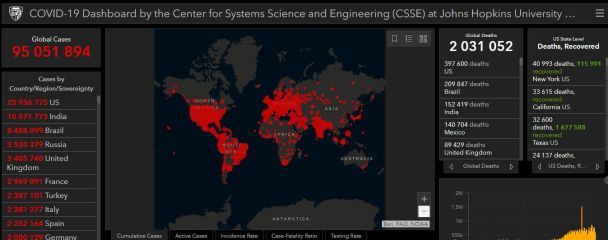 Количество выявленных случаев заражения коронавирусом в мире превысило 95 миллионов, из них - побороть за болезни не смогли более двух миллионов человек.
