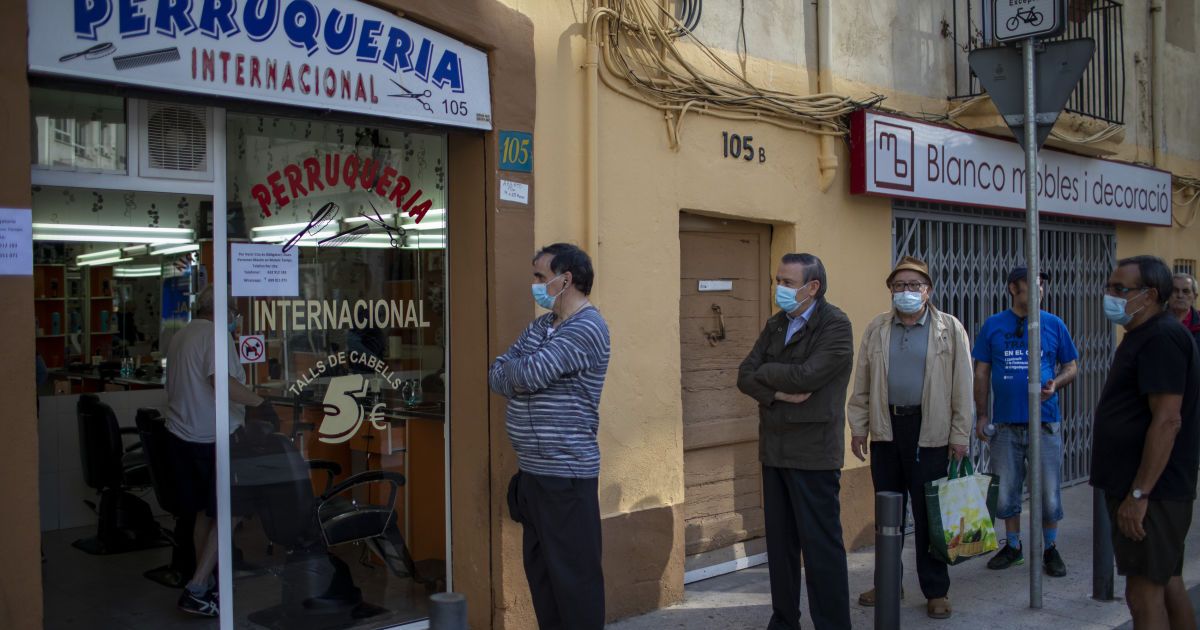 К парикмахерским выстроились очереди, а улицы заполонили люди: ослабление карантина в Испании в фото
