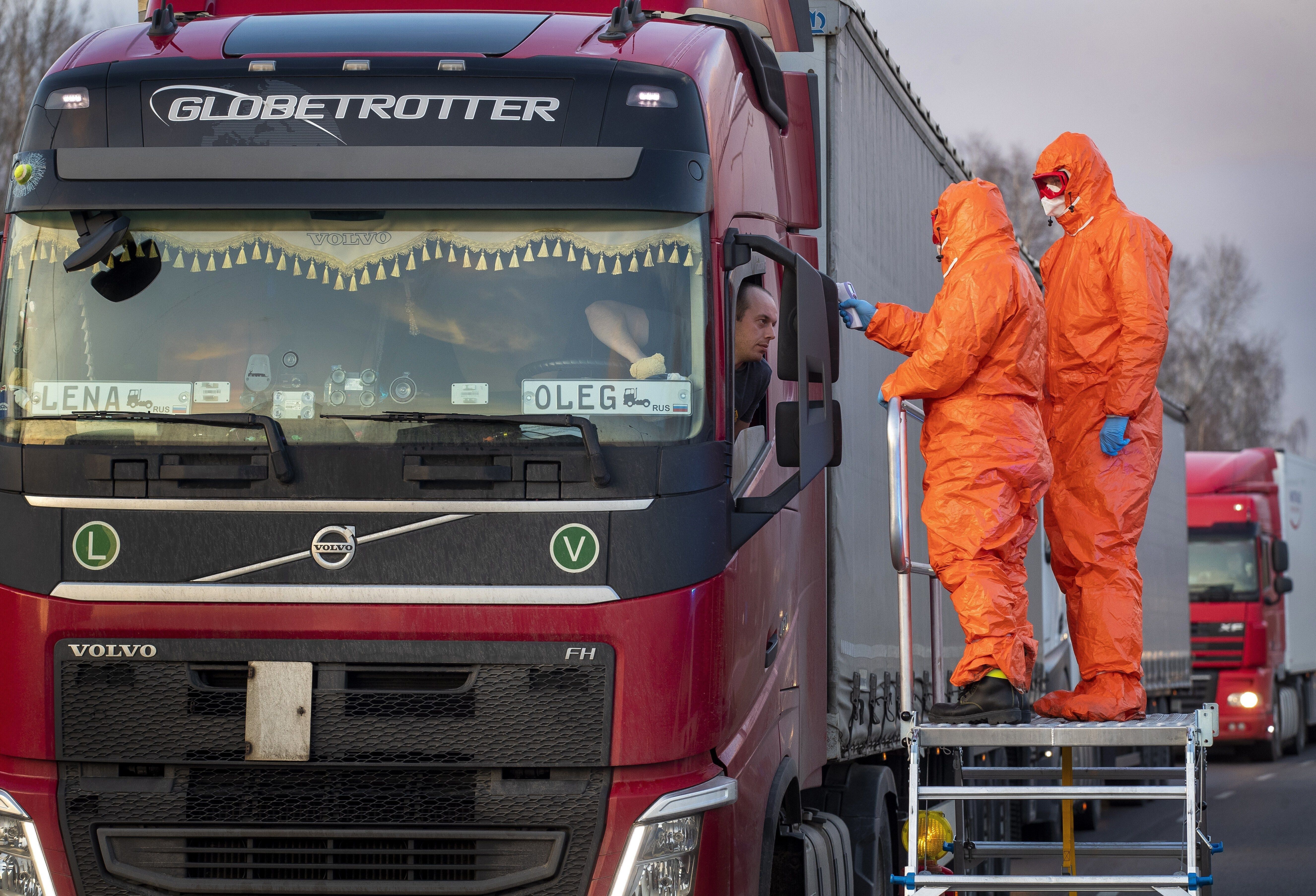 Польские пограничники проводят температурный скрининг водителю грузовика / © Associated Press